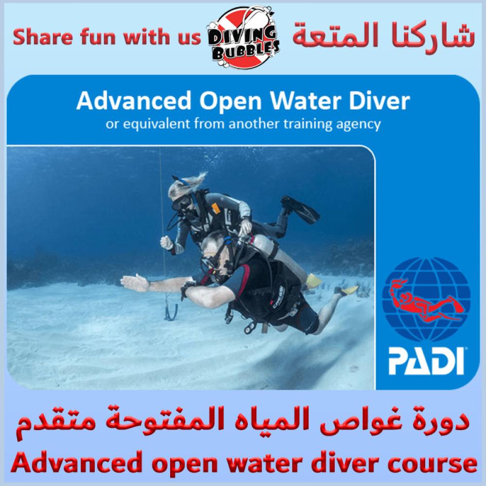 مرتبطة بالمنهج الإلكتروني الذي سوف يصل إلى ايميلك : ( دليل بادي للغواص المتقدم ) وسيطلب منك المدرب حل التمارين الموجودة في نهاية كل فصل أما برنامجها فهو عبارة عن عدد خمسة غوصات في البحر المفتوح ، وكل غوصه من هذه ألغوصات تشمل نشاطات مختلفة عن الأخرى ، لا كن هناك نوعان من ألغوصات إجبارية للمتدرب أما الثلاث غوصات الأخرى فهي اختيارية .